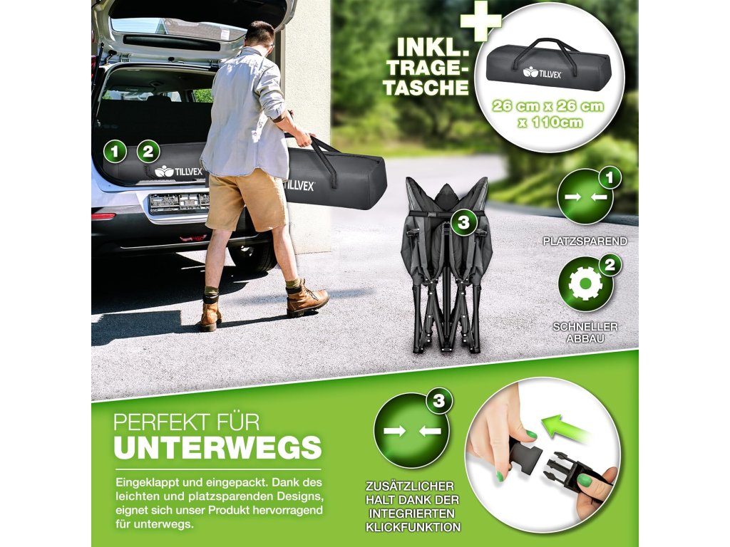 Kempingové skladacie ležadlo s taškou – ideálne na kempovanie, rybárčenie, festivaly alebo záhradu.