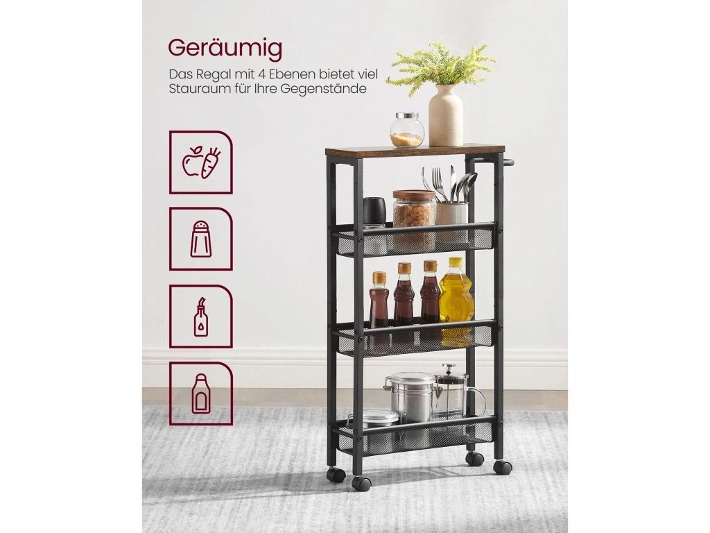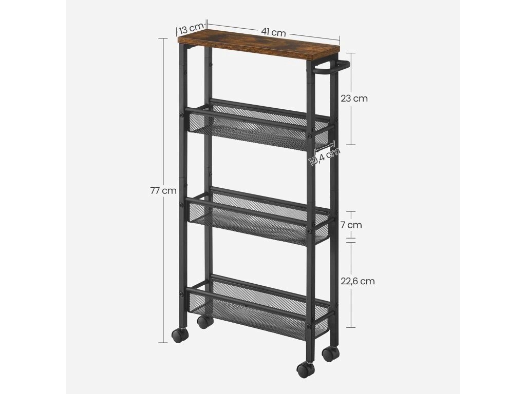 Praktický kuchynský vozík s 3 košmi – ideálny na skladovanie potravín, zeleniny, riadu alebo doplnkov v kuchyni.