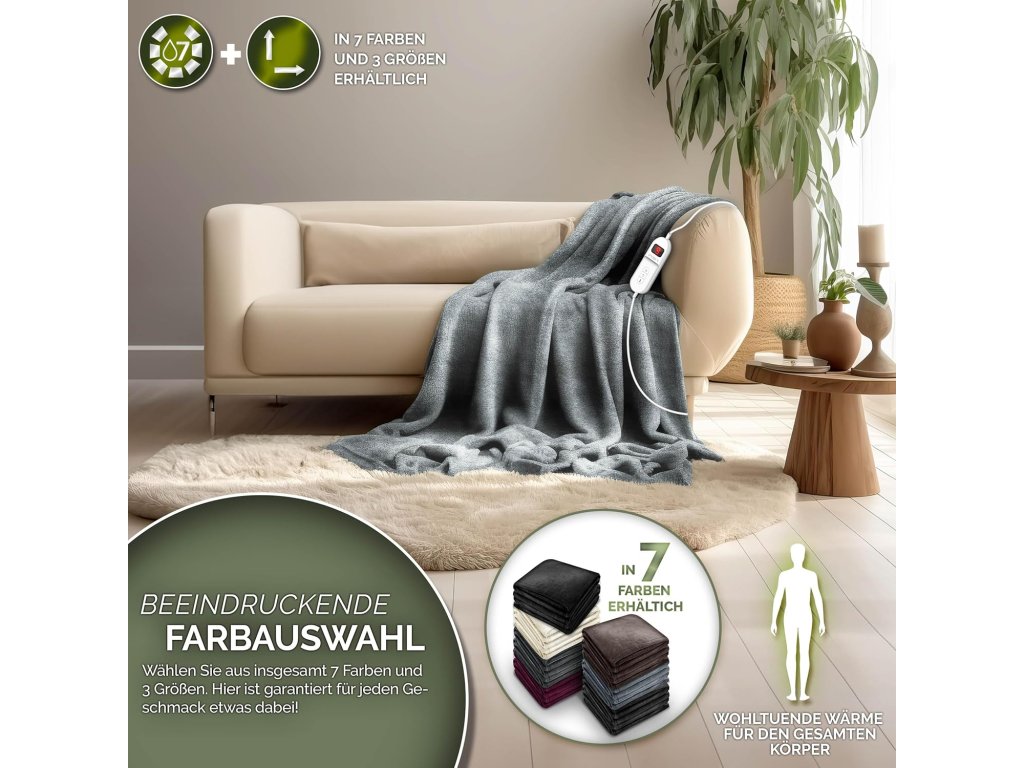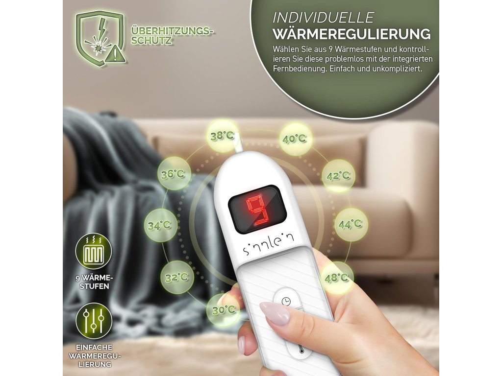 Elektrická vyhrievacia deka sinnlein® z hebkého plyšu, ideálnu na zimu aj chladné večery.