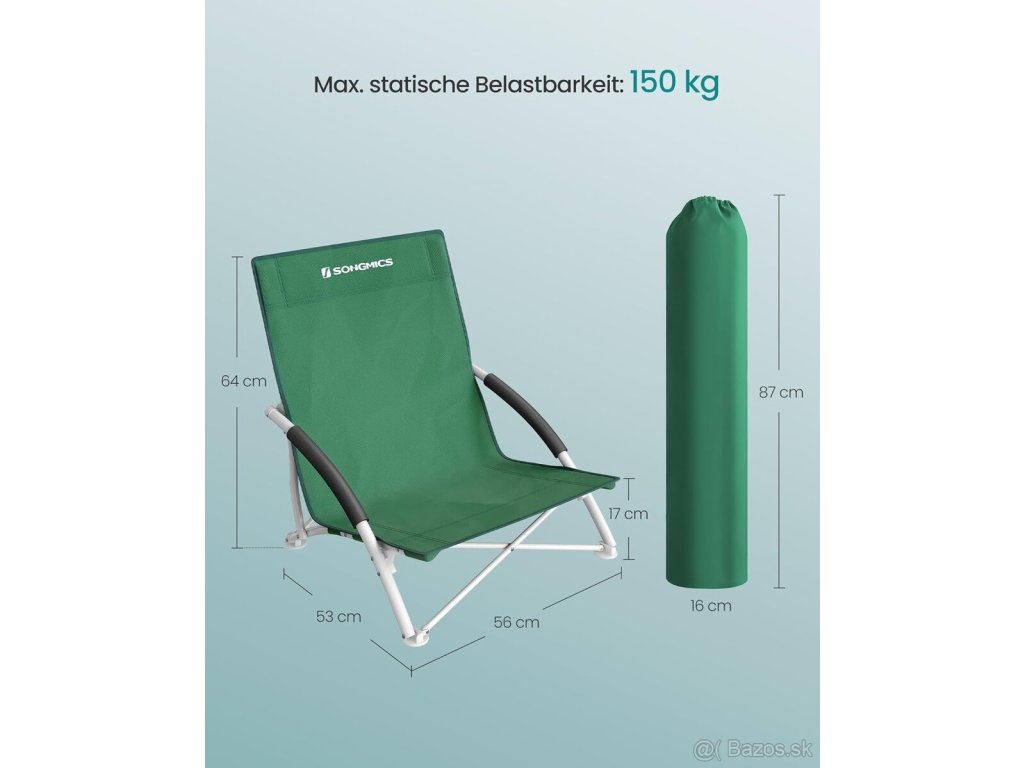 Skladacie kreslo značky SONGMICS – ideálne na pláž, kempovanie, rybárčenie alebo festivaly.