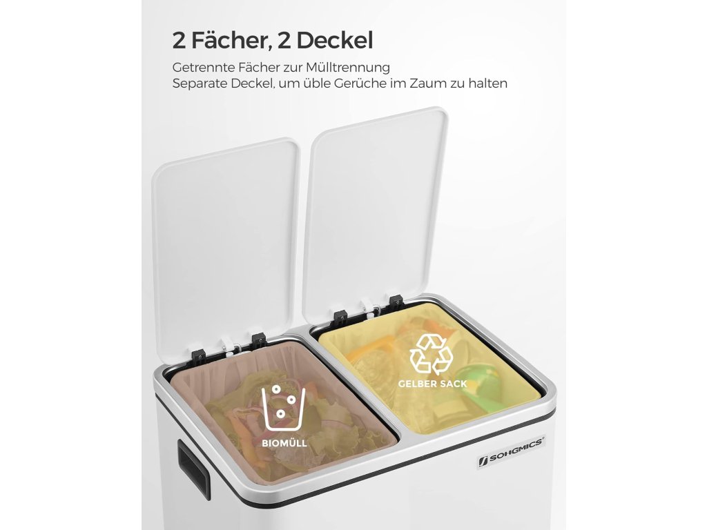 Odpadkový kôš SONGMICS so systémom triedenia odpadu – ideálny do kuchyne.