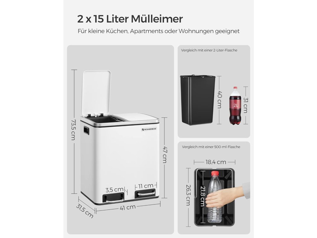 🗑️ Objem: 2 × 15 l (spolu 30 l)