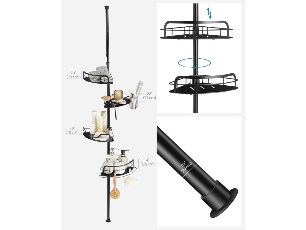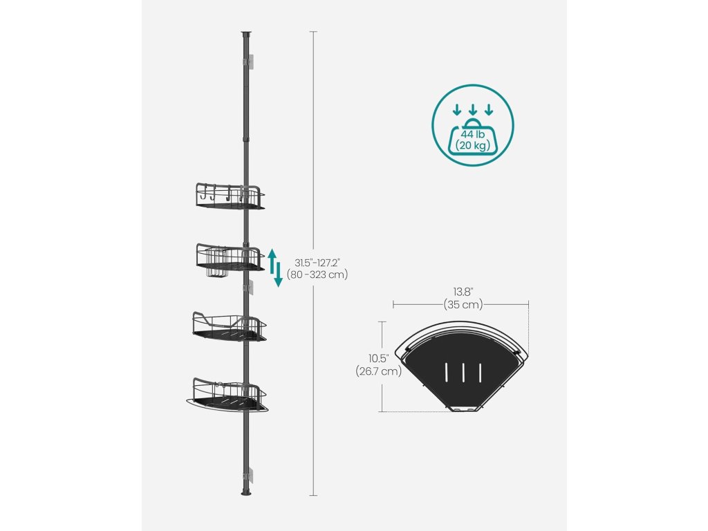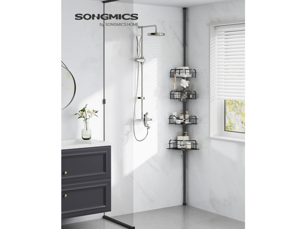 Rohová polica SONGMICS – praktický úložný priestor do kúpeľne, kuchyne alebo na balkón.