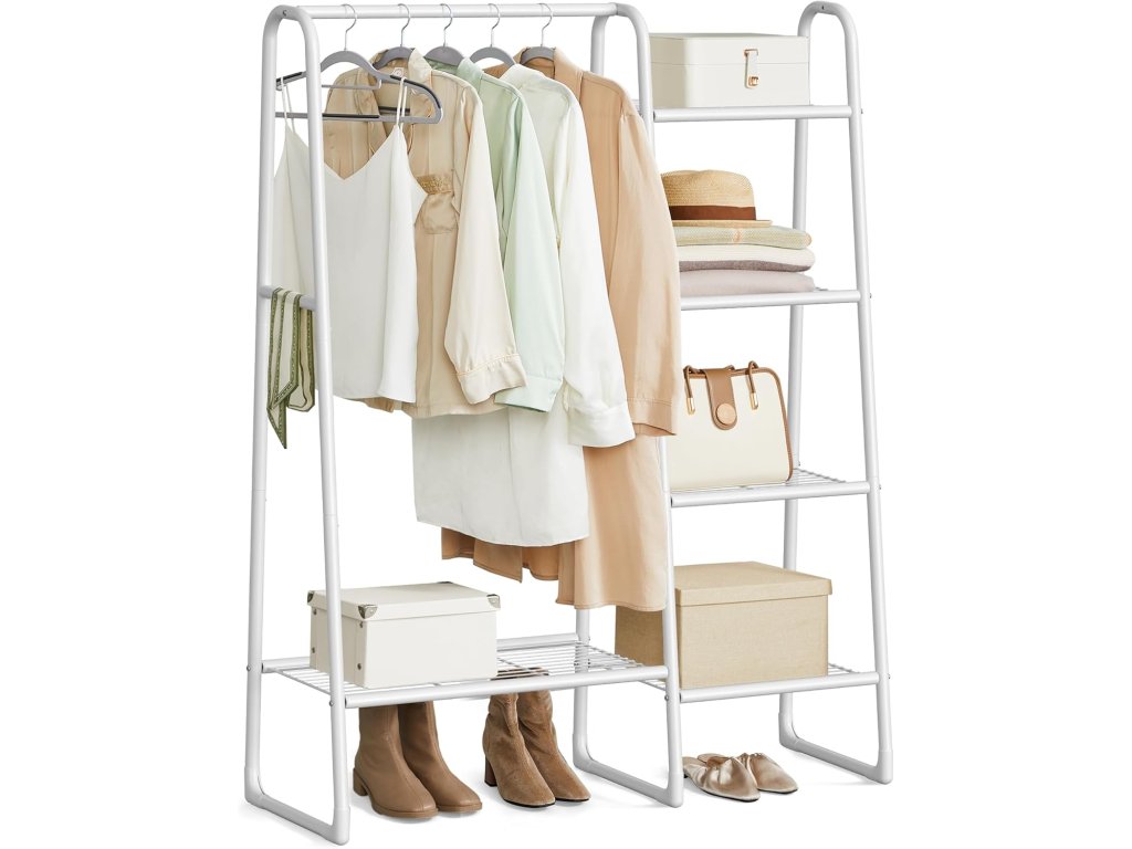 Stojan na oblečenie v elegantnej matnej bielej farbe. Praktické riešenie na zavesenie a uloženie oblečenia v spálni, predsieni alebo obývačke.