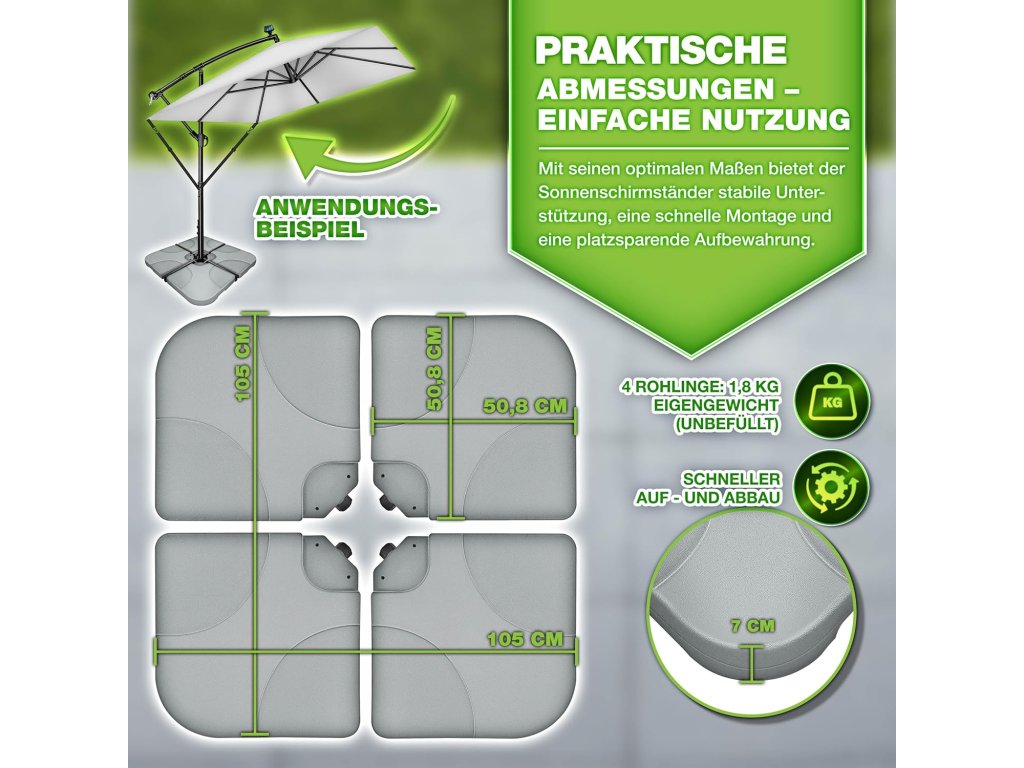✔️ Vhodný pre väčšinu typov závesných a bočných slnečníkov