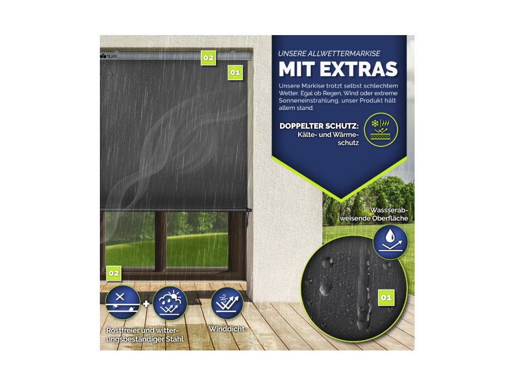 Vertikálna markíza tillvex® – moderná balkónová roleta vhodná na vonkajšie aj vnútorné použitie, ideálna na balkón, terasu alebo do záhrady.