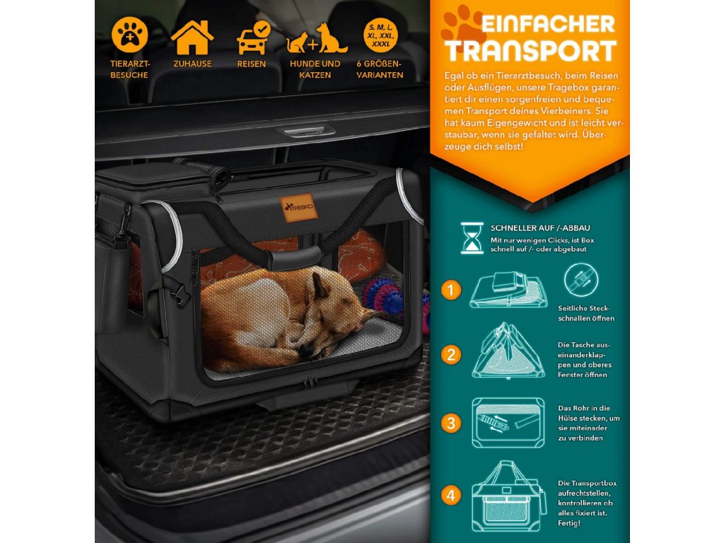Skladacia prepravka TRESKO® – vhodná pre psy aj mačky, ideálna na cestovanie autom alebo ako mobilný box.
