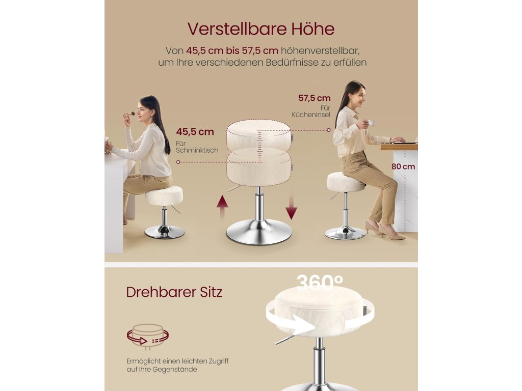 ✔️ Vhodná ako barová stolička, kozmetický taburet alebo do jedálne