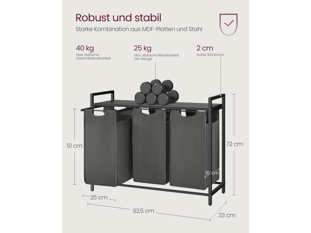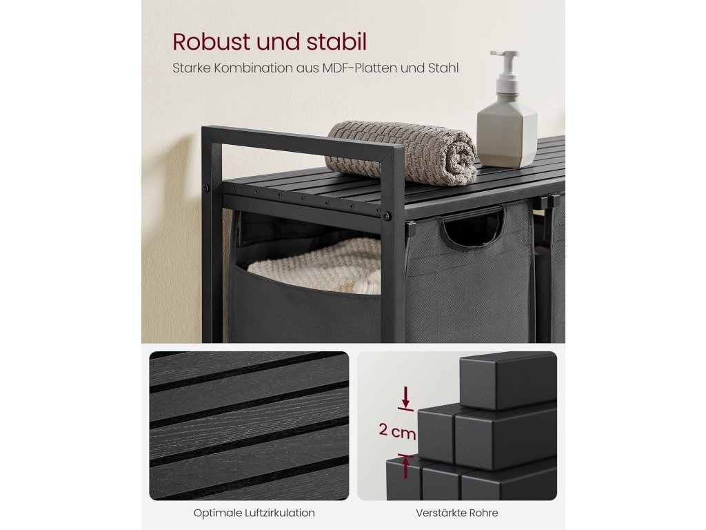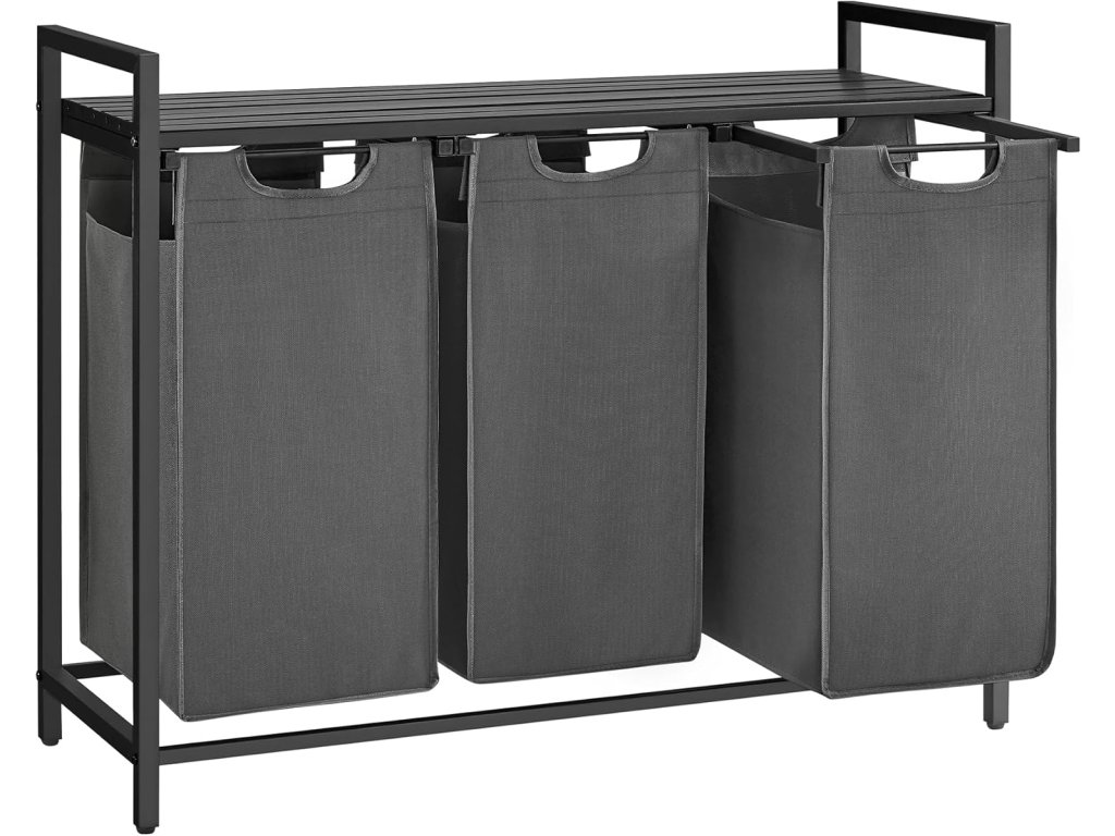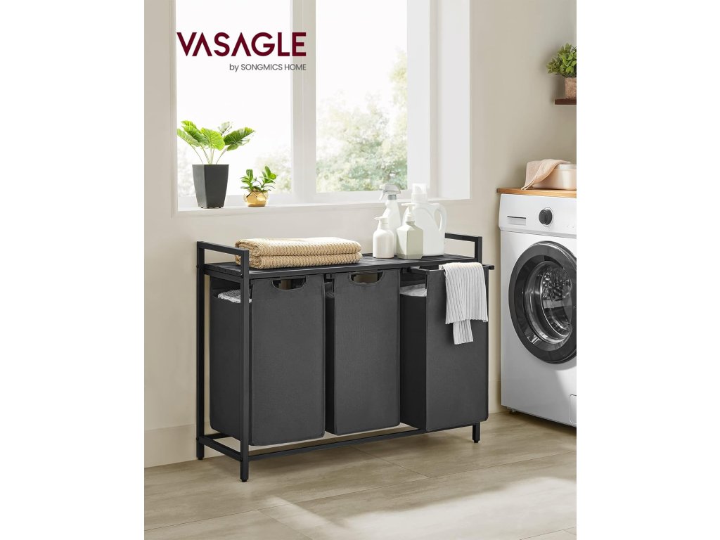 Kôš na bielizeň VASAGLE s praktickou poličkou a 3 vyberateľnými vakmi z Oxford tkaniny.