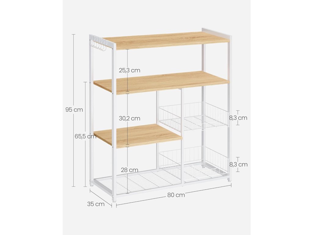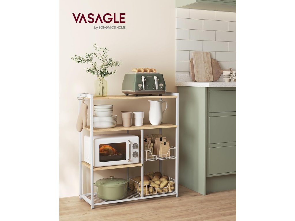 Kuchynský regál VASAGLE – praktický úložný priestor na mikrovlnku, kuchynské spotrebiče a doplnky.