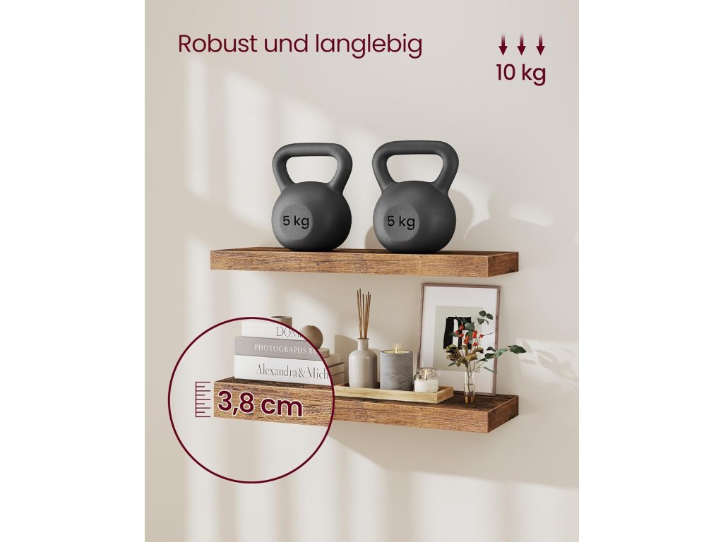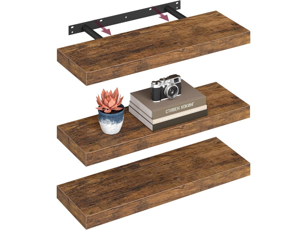 Set 3 nástenných políc VASAGLE – plávajúce (floating) police v modernom vintage štýle, ideálne na dekorácie, rámiky, knihy či malé doplnky.