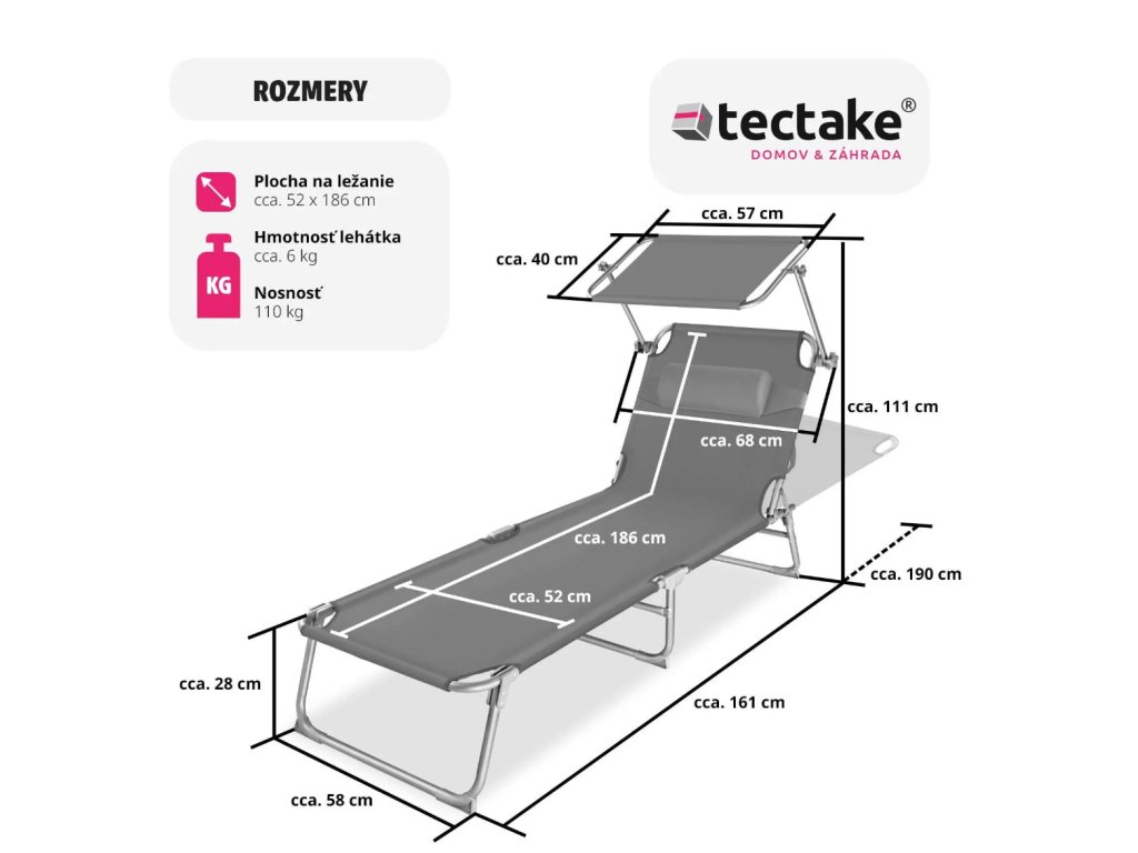 Záhradné lehátko tectake® Chloé. Pohodlné a praktické lehátko ideálne na terasu, balkón, k bazénu alebo do záhrady.