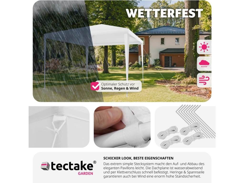 Záhradný altánok tectake® 3 × 3 m s vodoodolnou PE plachtou a UV ochranou. Ideálny na záhradu, terasu, oslavy, festivaly, trhy alebo kemping.