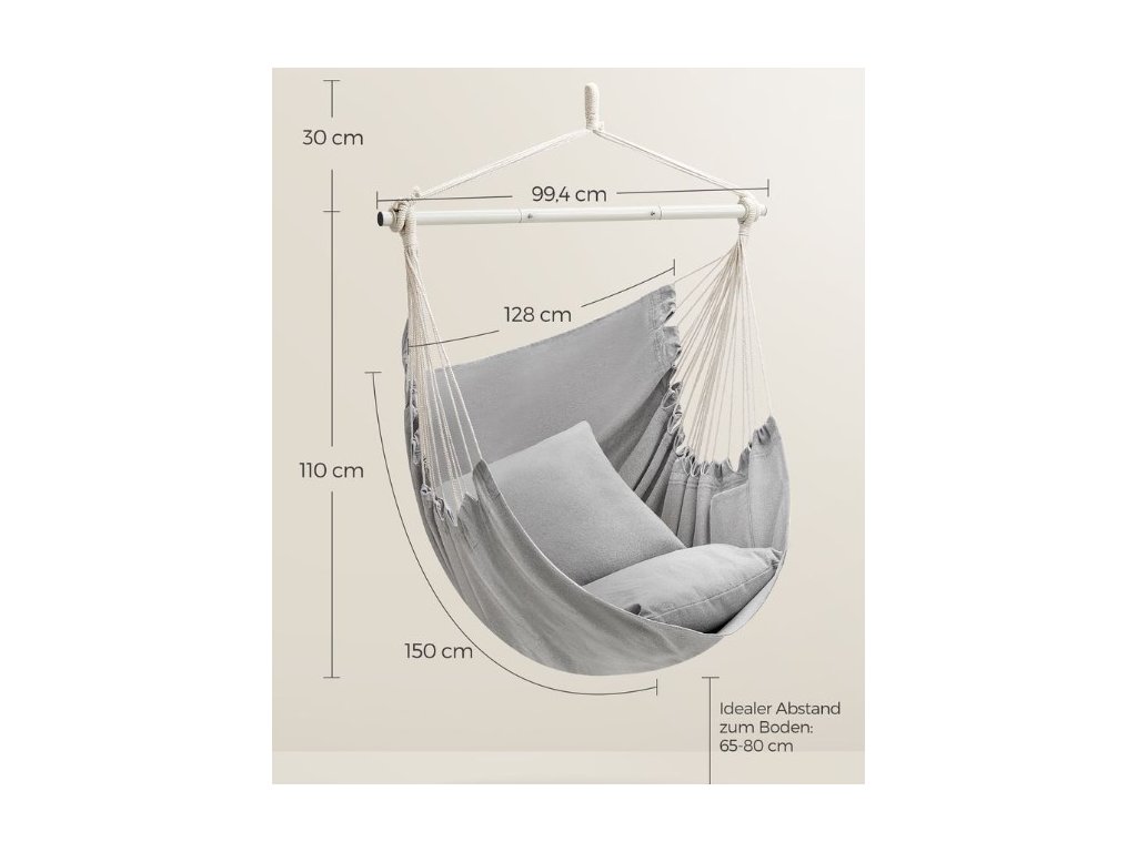 Závesné hojdacie kreslo značky SONGMICS – vhodné do interiéru aj exteriéru.